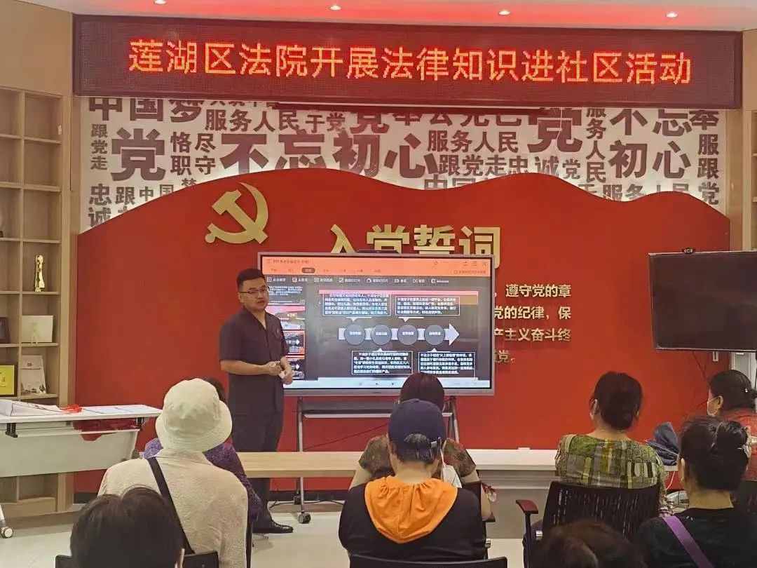 5月25日,莲湖区法院来到北院门街道桥梓口社区党群服务中心,为现场群众带来以“守住养老钱,幸福享晚年”为主题的预防养老诈骗普法宣讲。