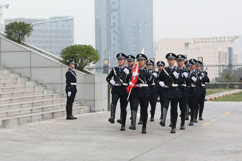 9时,英姿飒爽的11名法警迈着矫健的步伐,气宇轩昂,护送国旗行进至升旗台,伴随着雄壮的国歌,鲜艳的五星红旗冉冉升起,迎风飘扬,进一步激发了全体干警的家国情怀,心中的自豪感更加充盈、使命感更加坚定!