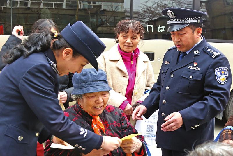 3月5日,是全国第56个学雷锋日。西安市公安局新城分局“汪勇志愿者服务队”在时代楷模汪勇(右)的带领下来到咸东社区安装四处家属院,开展扫黑除恶宣传,为社区行动不便的老人义务理发、和老人们拉家常,受到群众的称赞。