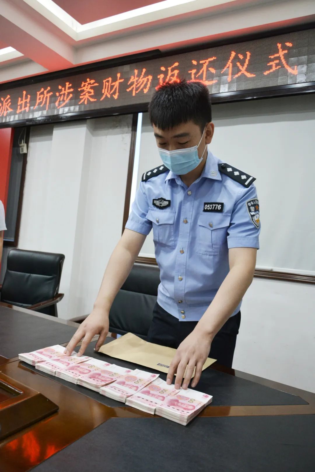 2021年12月,报警人王女士到十里铺派出所报案称,自己在网上认识了网友并在对方的诱导下先是刷单后投资理财被骗。接到报案后,办案民警张亚民和同事立案调查,并多次安抚受害人情绪,表示将尽最大努力破案追赃。此后民警出差远赴江西、湖南等地开展了大量艰苦细致的调查工作,于2022年3月将本案彭某等4名嫌疑人抓获归案,追回涉案款项8.8万余元并返还。这次的7万元,已是十里铺派出所深挖案件后第二次向王女士返还被骗款项。