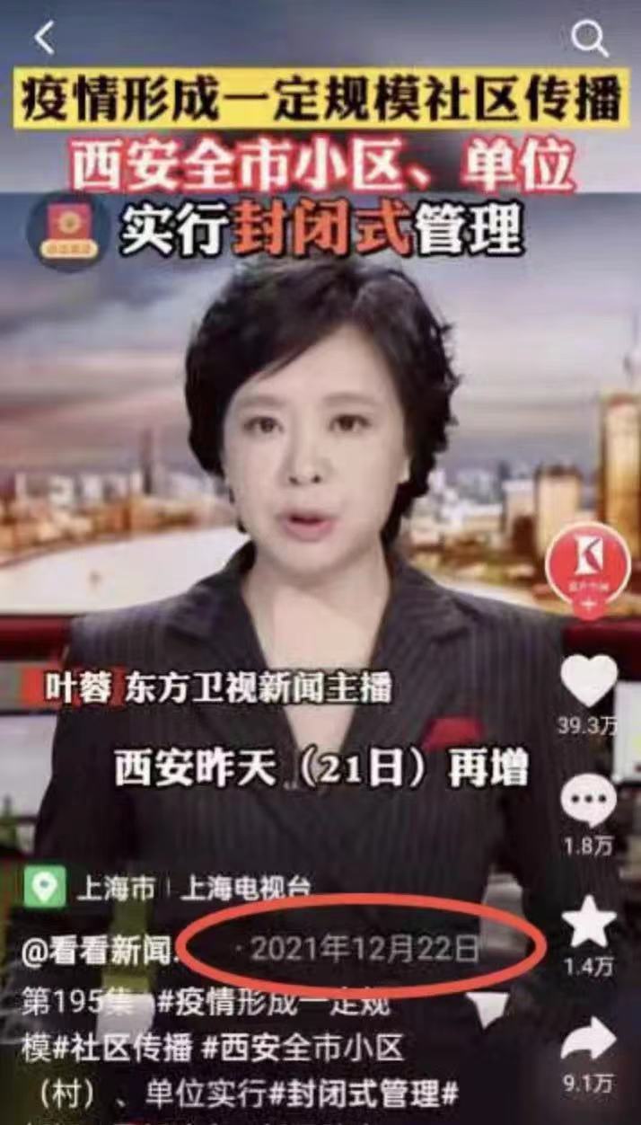 8月22日,西安市互联网违法和不良信息举报中心发布辟谣通知:此消息为2021年12月22日抖音平台“看看新闻”发布的信息。请广大网民持续关注官方发布的信息,切勿听信小道消息,做到不信谣,不传谣。