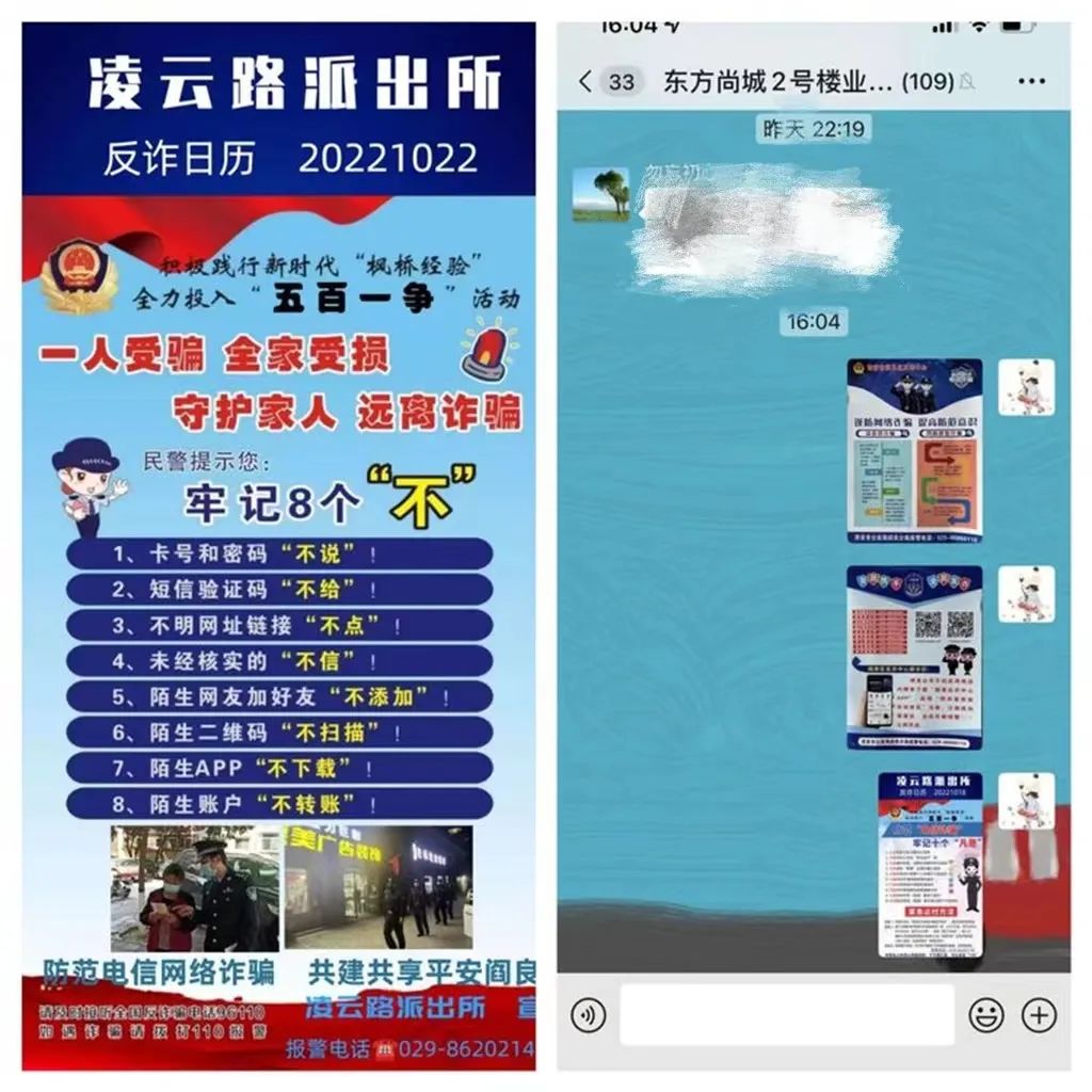 在线下反诈的基础上,凌云路派出所各社区民警还通过辖区各行业群、职工群、业主群等渠道发布“反诈日历”、反诈图文音视频,时刻提醒群众捂紧自己的“钱袋子”。