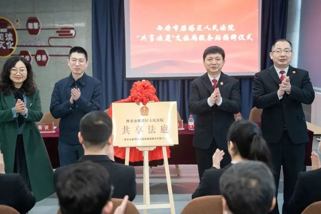 为加强矛盾纠纷源头治理、前端化解、关口把控,切实有效服务和促进区域旅游经济产业发展,2月23日上午,雁塔区法院与雁塔区文旅局举行了“共享法庭”文旅局服务站揭牌仪式,雁塔区副区长聂虎,雁塔区法院党组书记、院长李云峰,雁塔区文旅局党组书记、局长杨虹,区法院党组副书记、副院长尤骥,区文旅局党组成员、副局长高庆参加仪式。