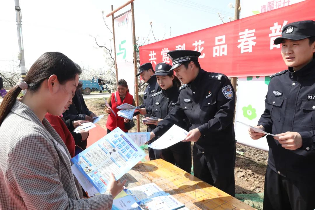 春无事,为花忙,反诈知识也不能忘!为了让游客在“沉浸式”赏花的同时也能“沉浸式”接受反诈宣传,3月28日上午,公安阎良分局北屯派出所所长赵明建带领民警辅警,走进梨花花海,向游客、梨农宣传反诈等安全防范知识。