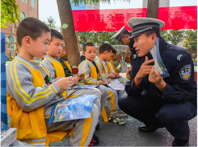 与此同时,另一场“交通安全小课堂”正在校园内上演。