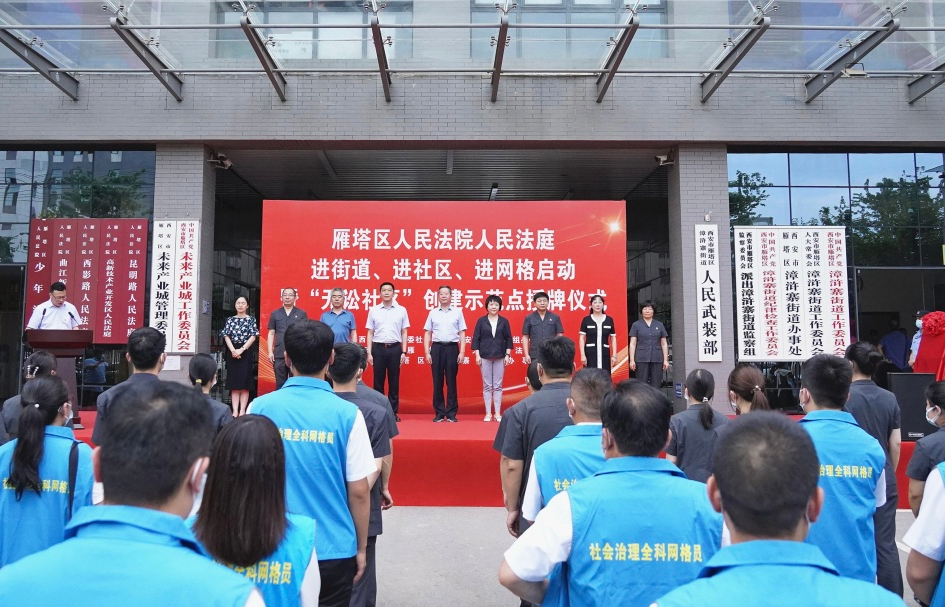 近日,西安市雁塔区人民法院在雁塔未来产业城举行人民法庭进街道、进社区、进网格启动暨“无讼社区”创建示范点授牌仪式。市委政法委常务副书记常青,市法院审委会专职委员党晓娟,雁塔区委常委、区委政法委书记、区委社会治理办主任潘焕乔,区法院党组书记、院长李云峰等相关部门领导出席仪式。