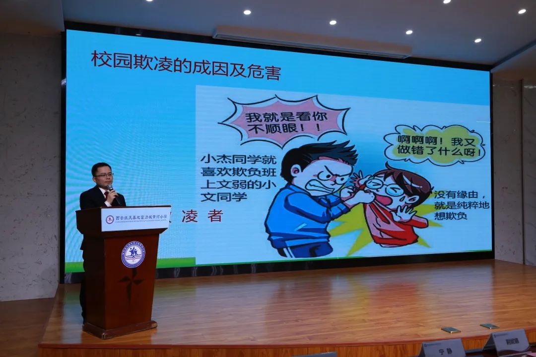 讲座中,赵海涛法官从中小学生安全教育日的设立宗旨和重大意义出发,向同学们介绍了校园安全、居家安全、出行安全、消防安全、网络安全等相关知识,对校园欺凌的危害性与违法性做了重点剖析,讲解了校园欺凌的表现形式,并结合典型案例以案释法,加深了同学们对校园欺凌以及如何反欺凌、加强自我保护的认识。