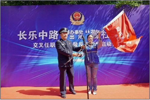 4月27日上午,公安新城分局长乐中路派出所联合长乐中路街道、辖区单位举办“警社共治”交叉任职暨反诈联盟启动仪式,应邀的辖区各社区主任、社区治安协理员、各小区物业公司、辖区企事业单位、院落警长等200余人参加。