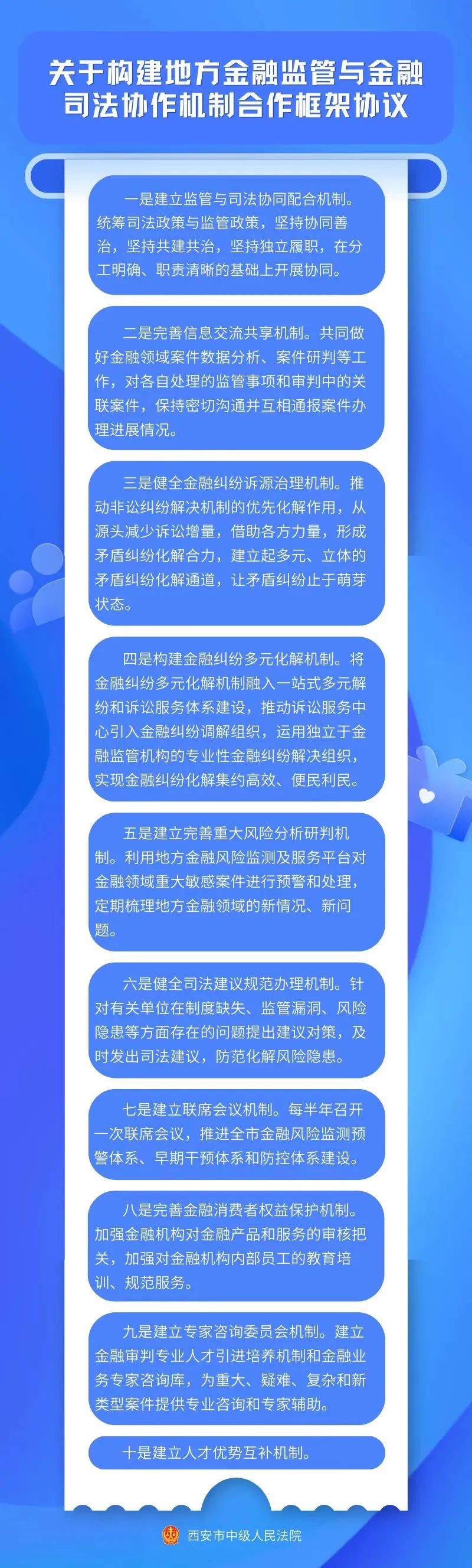会议还共同签署了《关于构建地方金融监管与金融司法协作机制合作框架协议》(简称《框架协议》),介绍了《框架协议》与《金融纠纷诉调对接机制建设实施意见》(简称《实施意见》)的主要内容。