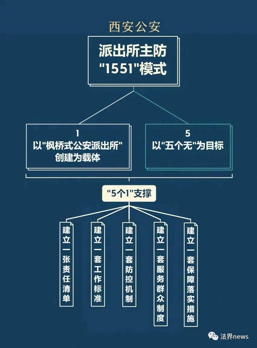 西安市公安局以派出所主防“1551"模式夯实基层基础,通过厘清职责定位给派出所减负,通过建立“三个四”选人用人机制引导优秀人才向基层一线流动,通过明确派出所“防什么、怎么防、防到什么程度,怎么跟踪问效”和“三单三率”绩效管理,加快推动派出所工作由管理向治理、由治标向治本、由传统向现代、由被动向主动、由粗放向精细转变,切实提升基层社会治理水平。