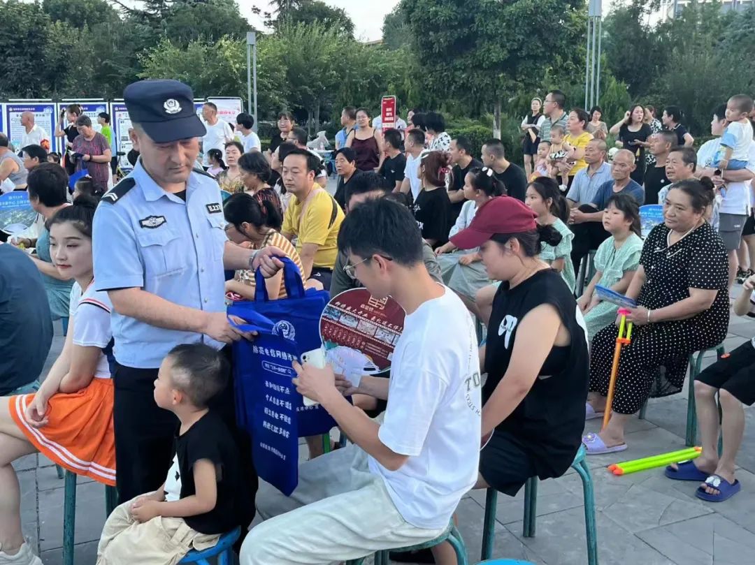 分局刑侦大队教导员张博龙上台与现场群众互动,讲解了骗子的伎俩和惯用招数,并提醒在场的观众牢记不轻信、不汇款、不转账的“反诈锦囊”,同时,反诈民警还向现场观众派送了购物袋、反诈鼠标垫和阎良区反诈典型案例汇编组成的“反诈大礼包”,让大家在欣赏精彩节目的同时学习反诈知识,提升自身安全防范意识。
