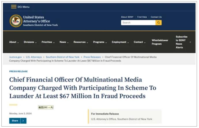 当地时间6月3日,美国司法部网站公布了一则起诉书,指控“法轮功”邪教组织旗下媒体《大纪元时报》首席财务官关伟东(Bill Guan,音译)涉嫌跨国洗钱,将至少约6700万美元(约合人民币4.85亿元)非法所得洗白,以使自己和《大纪元时报》受益。关伟东已于6月2日被捕,3日下午接受了美国地方法院审理。