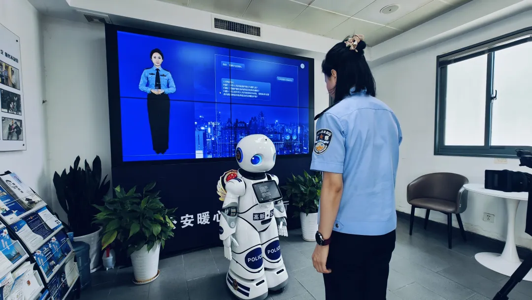 8月6日,记者来到位于西安高新区白沙路暖心警务会客厅,见到了上岗一周多的AI智能机器人警察。
