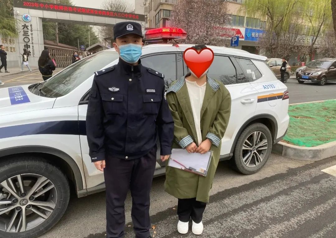 3月11日上午,公安阎良分局凌云路派出所民警郑超群、辅警朱亚娟,在阎良区2023年教师资格考试六三O中学考点执勤时,一名考生向民警求助:自己把身份证和在铁一中航空城分校考点的同学拿错了,两人都无法进场考试。民警郑超群立即驾驶警车带考生到铁一中航空城分校考点与其同学换证,并及时赶在开考前将其带回,让考生顺利参加考试。